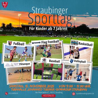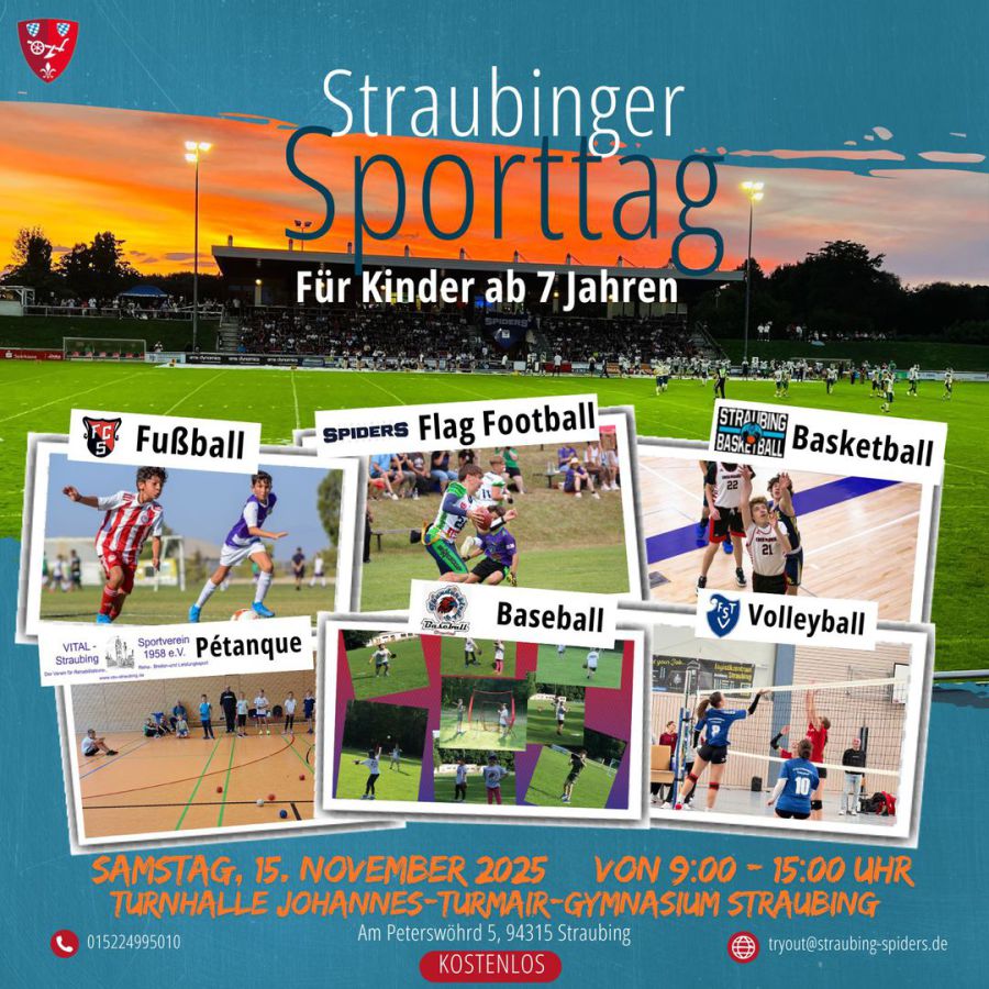 Am Samstag, den 15. November 2025 laden wir alle sportbegeisterten Kinder ab 7 Jahren herzlich zum Straubinger Sporttag ein!